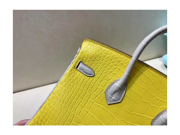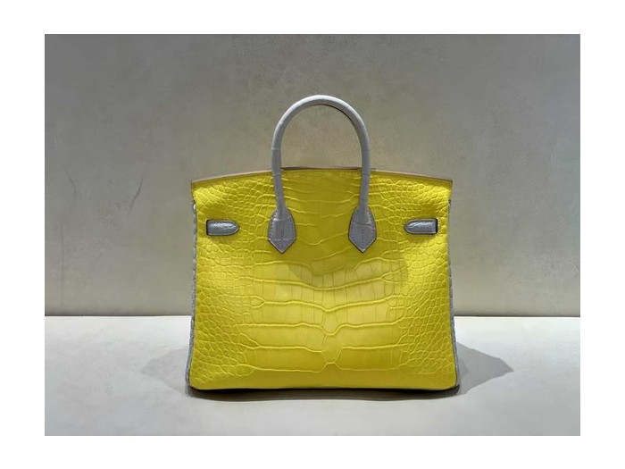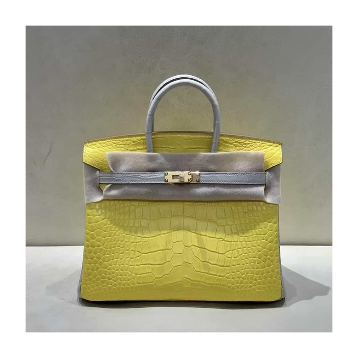 Hermès Birkin 25 Matte American Alligator Marigold with Pearl Grey x Gold Hardware