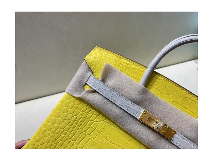 Hermès Birkin 25 Matte American Alligator Marigold with Pearl Grey x Gold Hardware > Birkin