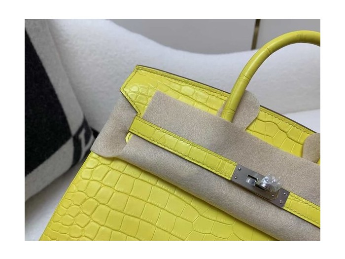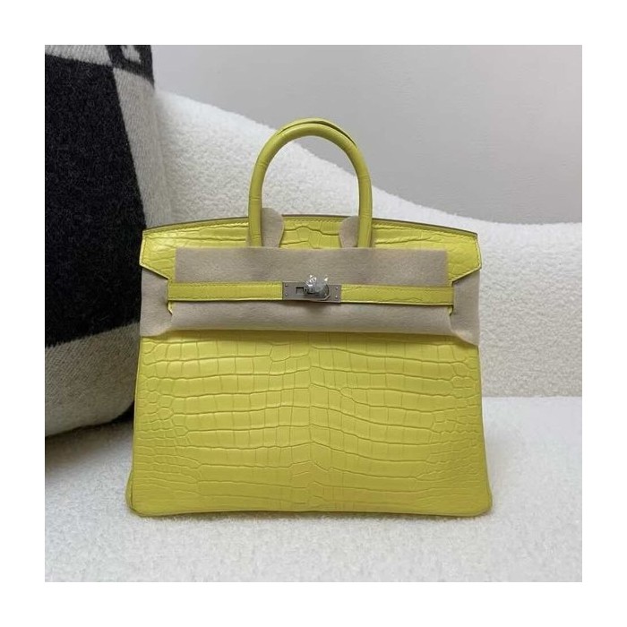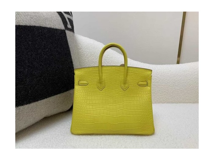 Hermès Birkin 25 Matte Porosus Crocodile M9 Marigold x Palladium Hardware > Birkin