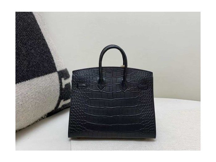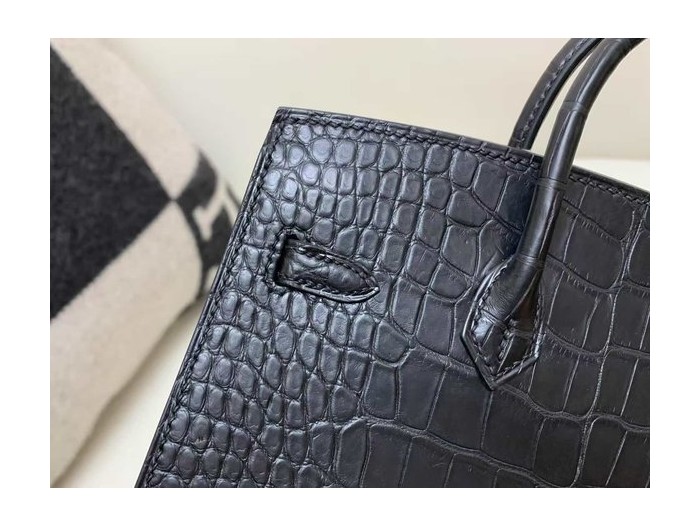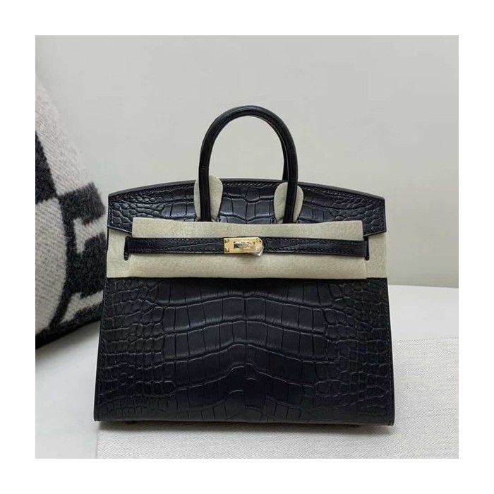 • Hermès Birkin 20 Alligator Matte Noir x Gold Hardware