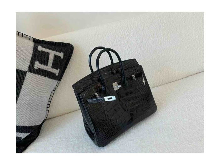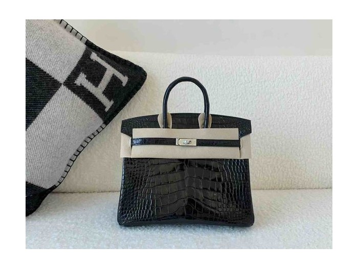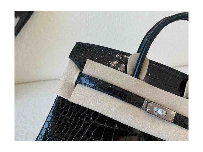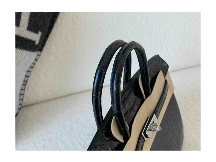 Birkin 25 Shiny Alligator Mississippiensis Noir x Palladium Hardware