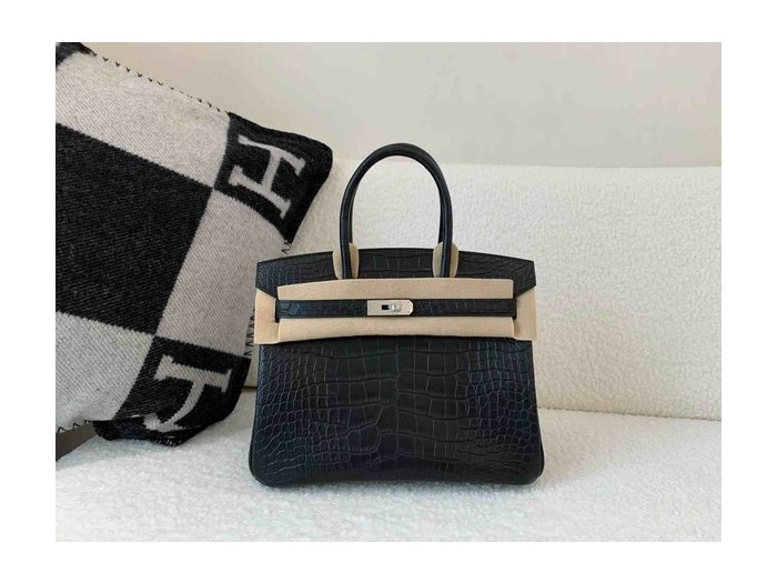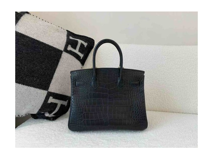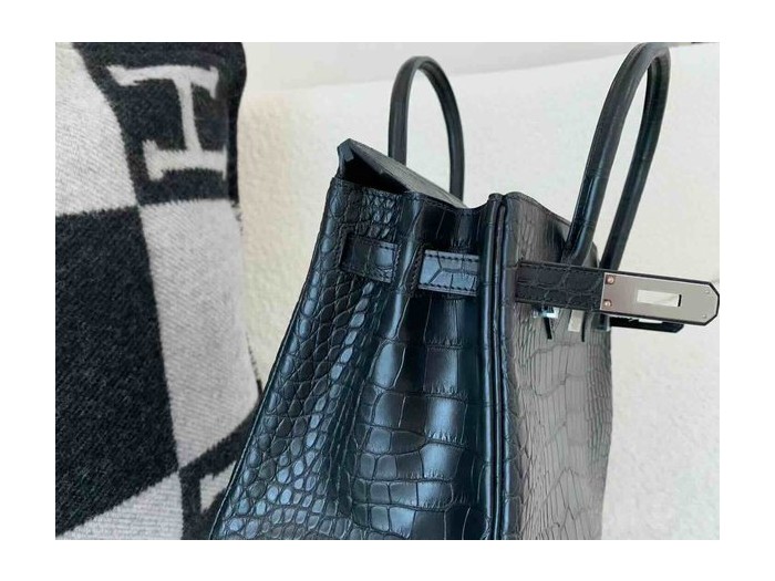 • Hermès Birkin 30 Matte Alligator Mississippiensis Noir x Palladium Hardware