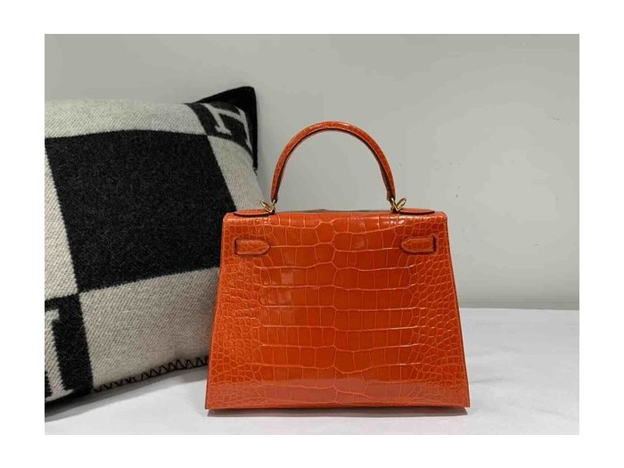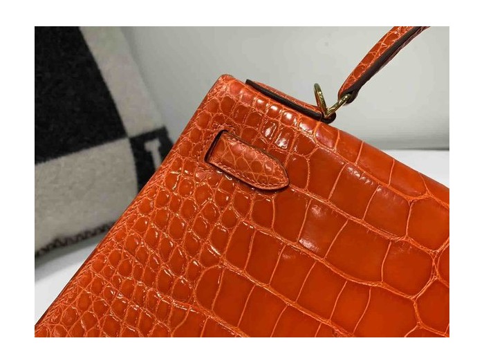 Hermès Kelly 25 Alligator Shiny Orange with Gold Hardware (In Stock)