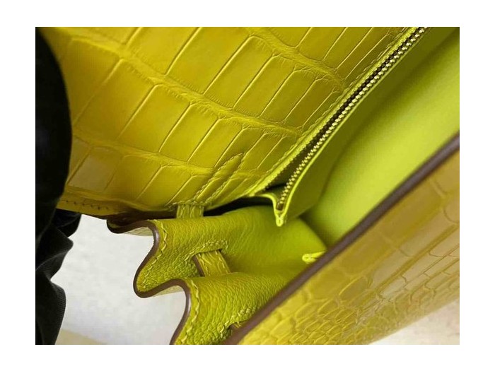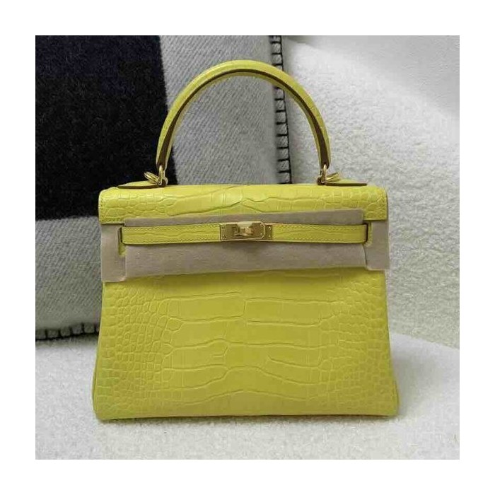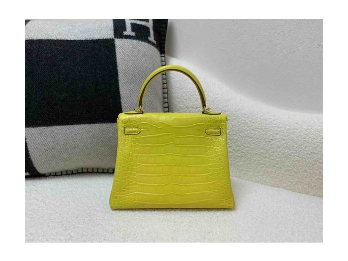 • Hermès Kelly 25 Alligator Matte Marigold Yellow with Gold Hardware