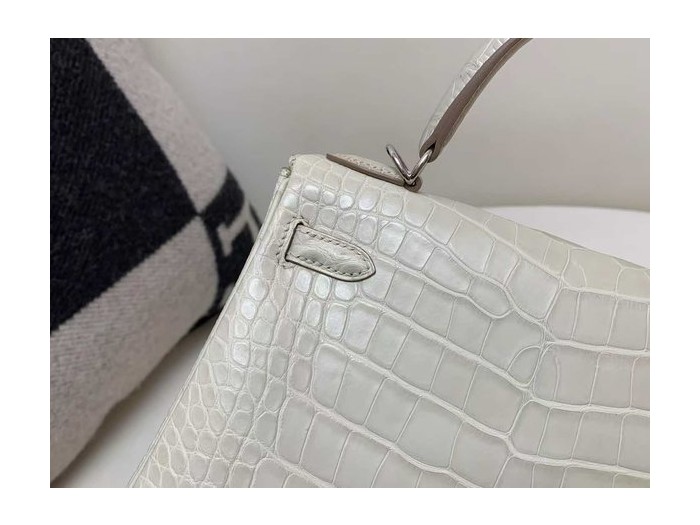 • Hermès Kelly 25 Gris Perle Niloticus Crocodile Palladium Hardware