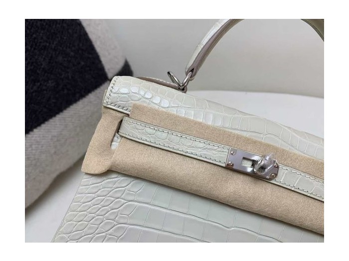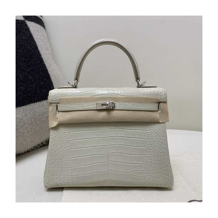 Hermès Kelly 25 Gris Perle Niloticus Crocodile Palladium Hardware > Kelly
