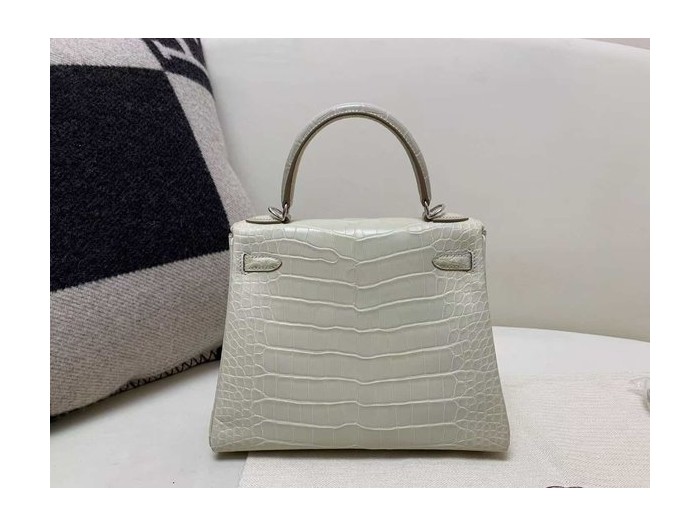 Hermès Kelly 25 Gris Perle Niloticus Crocodile Palladium Hardware