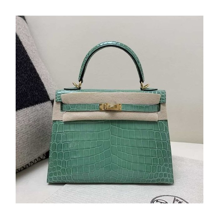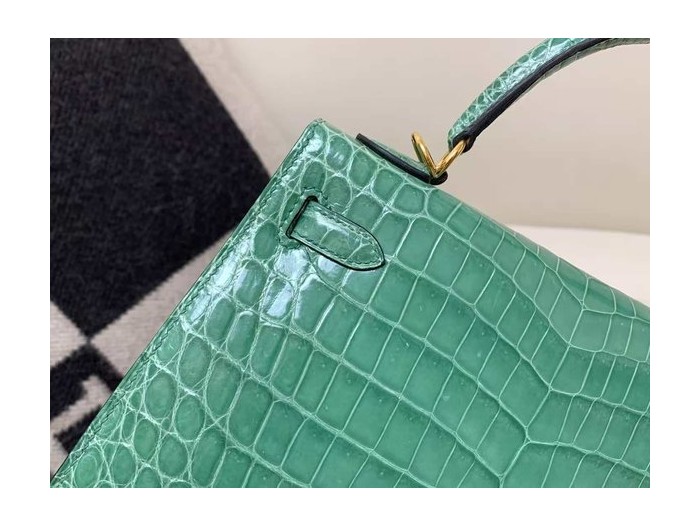 • Hermès Kelly 25 Vert Jade Niloticus Crocodile Gold Hardware