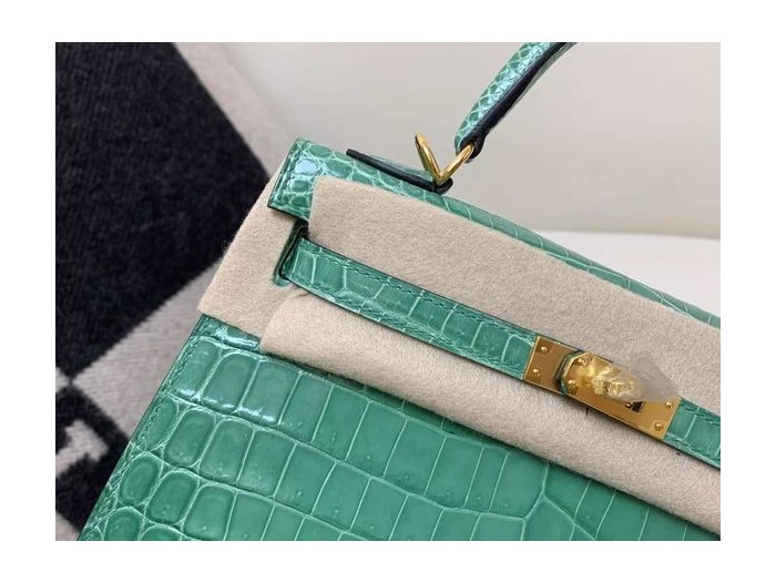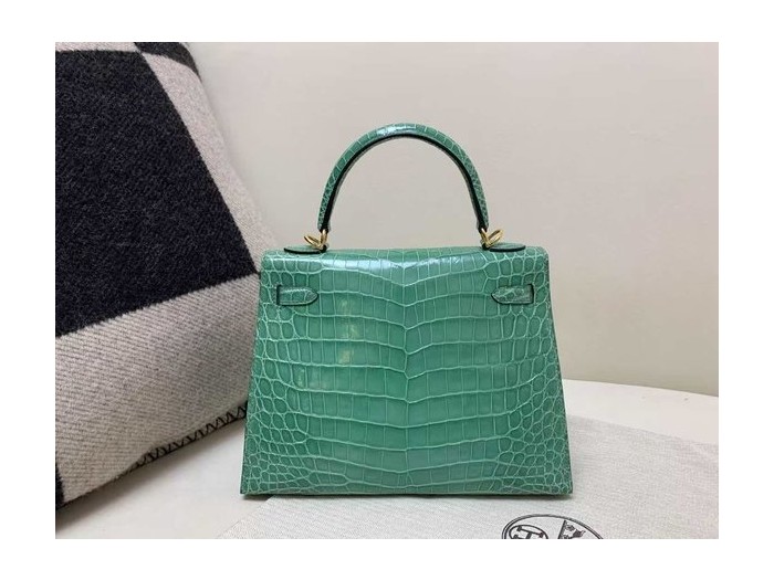 Hermès Kelly 25 Vert Jade Niloticus Crocodile Gold Hardware
