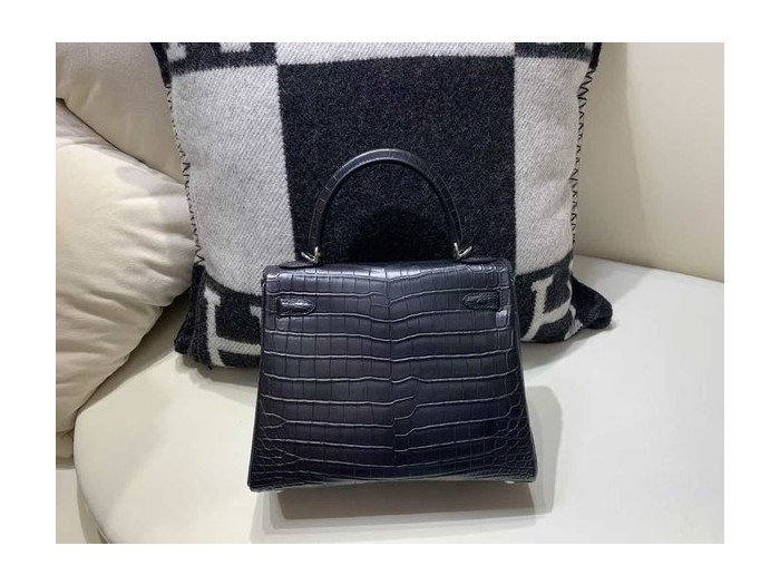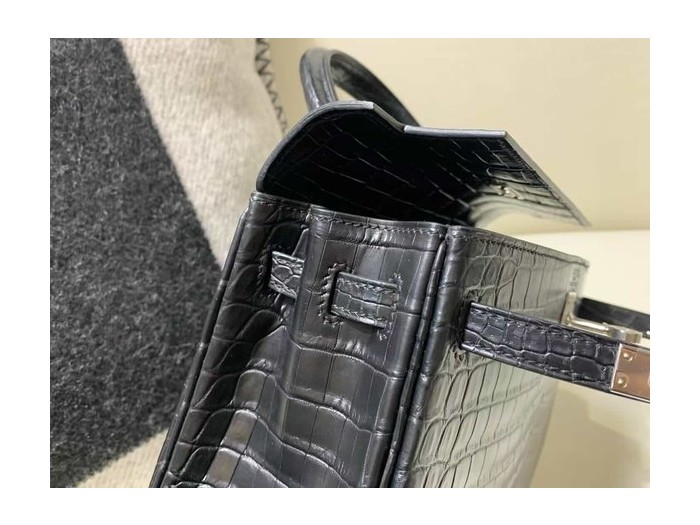 Hermès Kelly 25 Sellier Matte Alligator Noir with Palladium Hardware