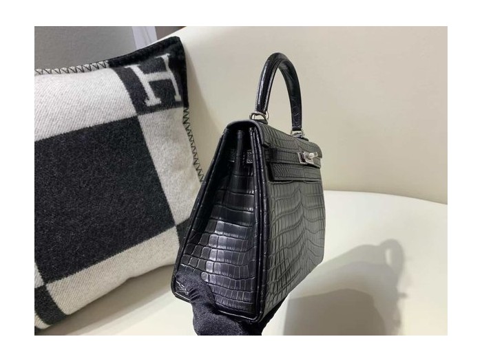 Hermès Kelly 25 Sellier Matte Alligator Noir with Palladium Hardware > Kelly