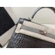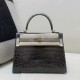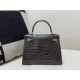 Hermès Kelly 25 Shiny Niloticus Crocodile 88 Graphite with Etoupe – Palladium Hardware