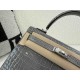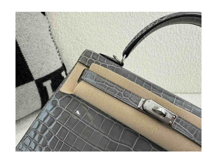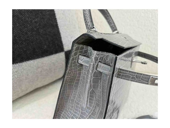 Hermès Kelly 25 Shiny Niloticus Crocodile Crystal Grey x Palladium Hardware > Kelly