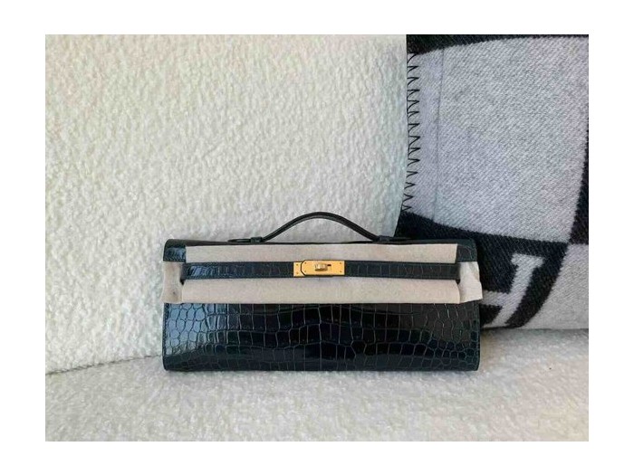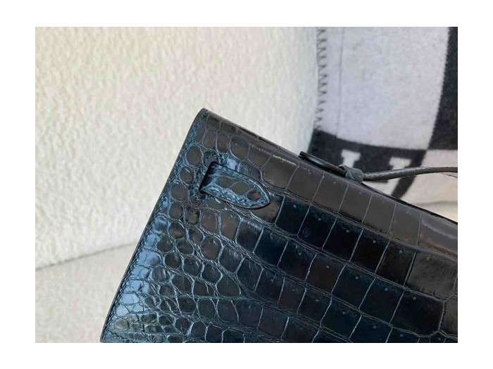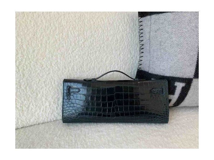 Hermès Kelly Cut 31 Shiny Porosus Crocodile Vert Rousseau x Gold Hardware > Kelly Cut