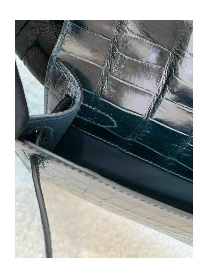 • Hermès Kelly Cut 31 Shiny Porosus Crocodile Vert Rousseau x Gold Hardware