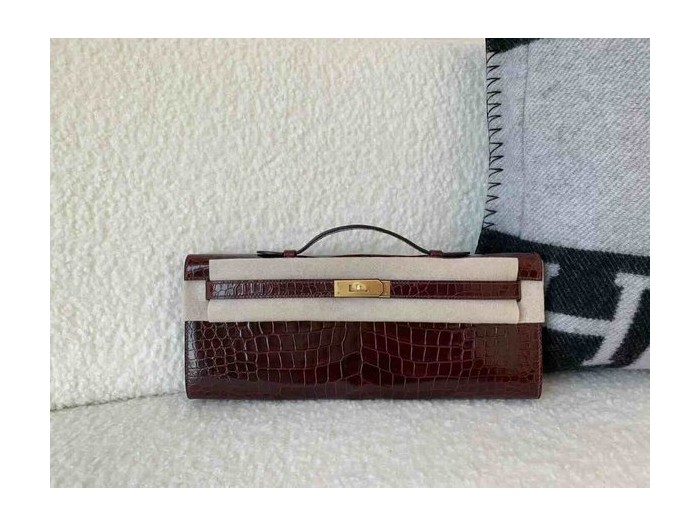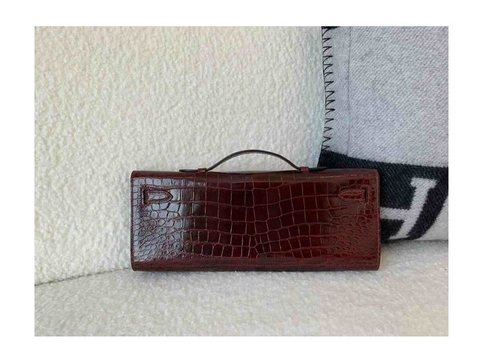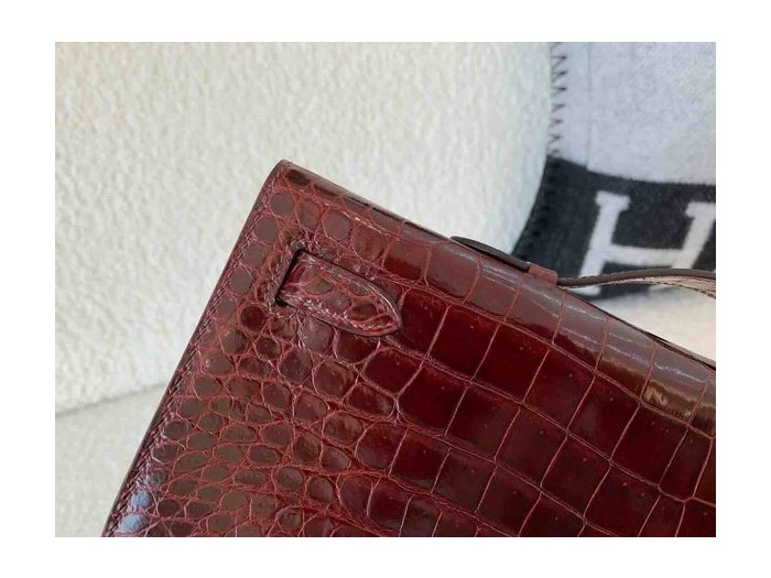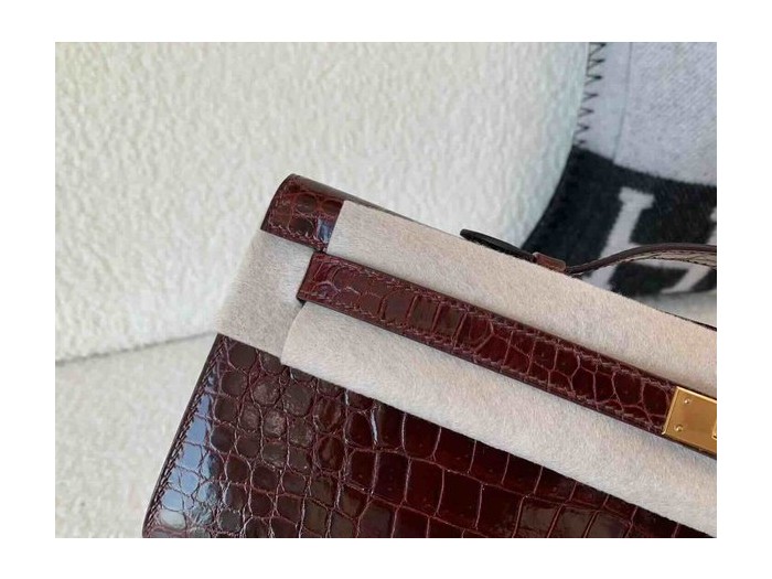Hermès Kelly Cut 31 Shiny Porosus Crocodile Bordeaux x Gold Hardware > Kelly Cut