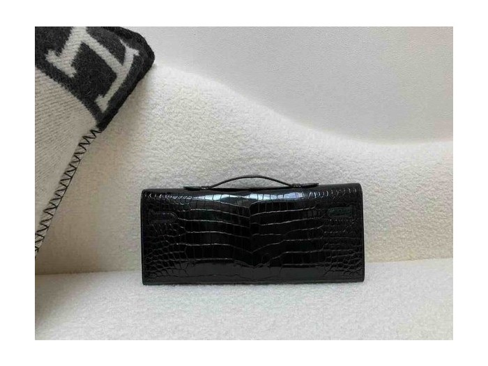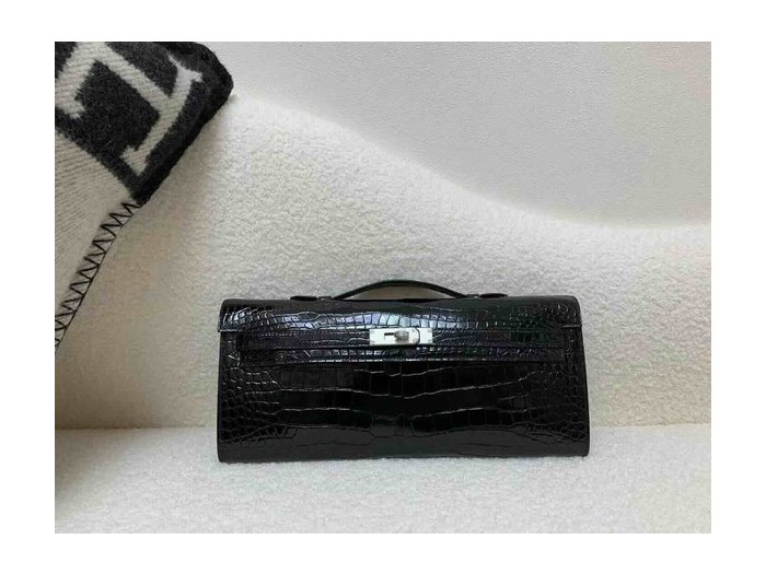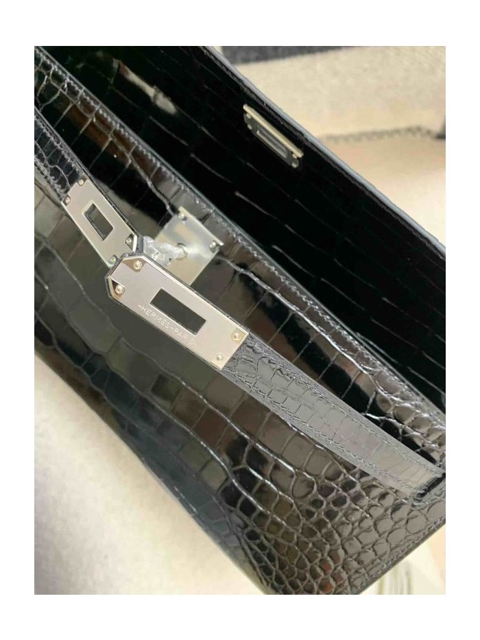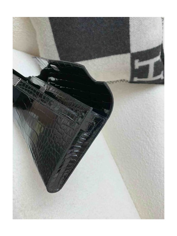 Hermès Kelly Cut 31 Porosus Crocodile Noir x Palladium Hardware > Kelly Cut