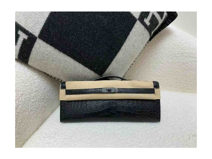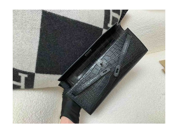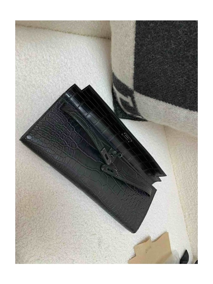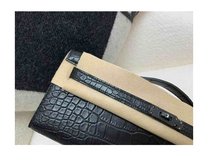 Hermès Kelly Cut 31 Matte Alligator Noir (Gunmetal)