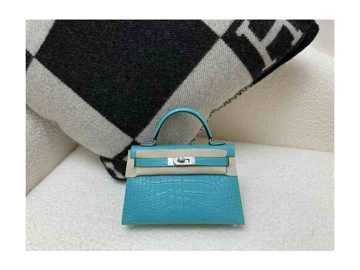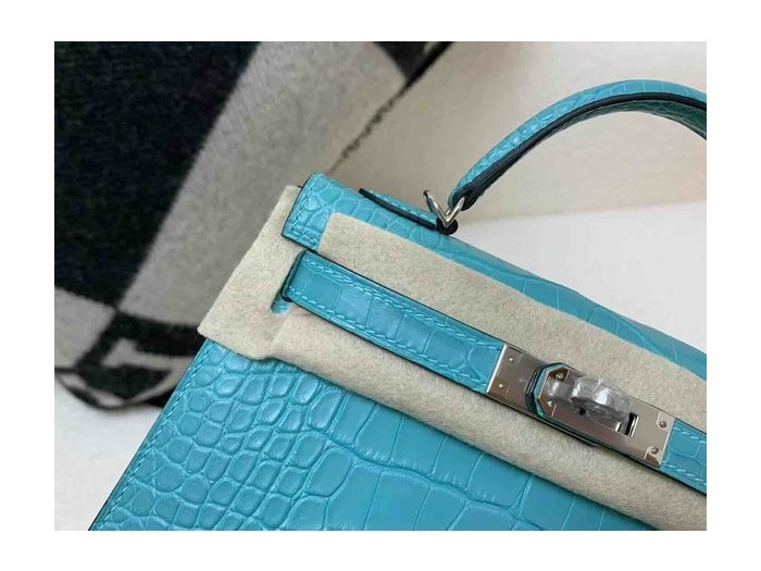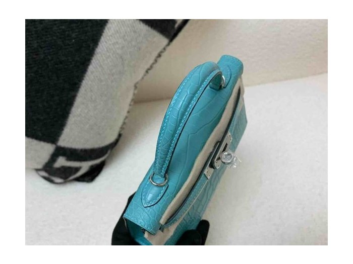 Hermès Mini Kelly Matte Alligator Bleu Paon x Palladium Hardware > Mini Kelly
