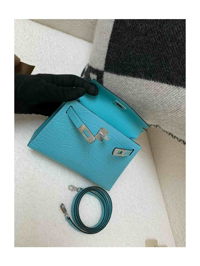 Hermès Mini Kelly Matte Alligator Bleu Paon x Palladium Hardware