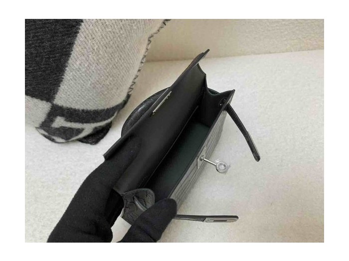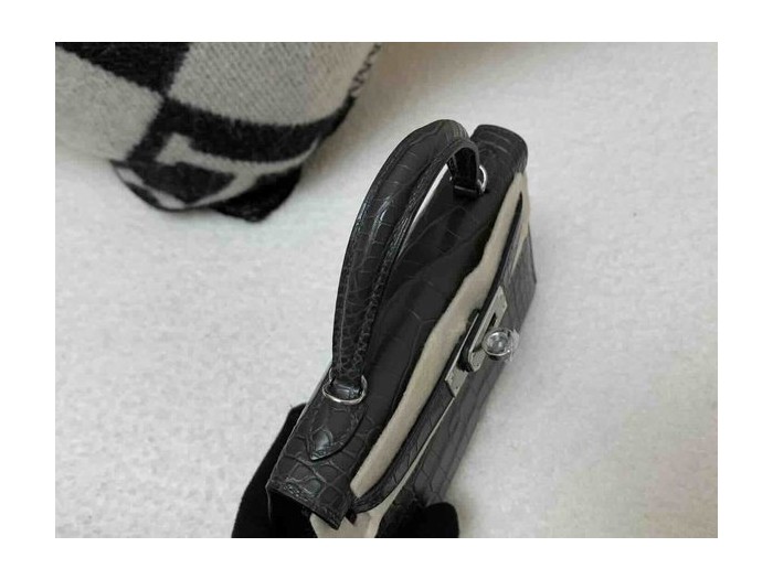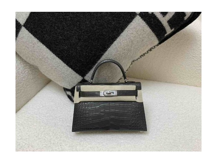 • Mini Kelly II Matte Alligator Gris Graphite x Palladium Hardware