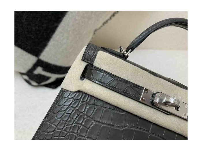 Mini Kelly II Matte Alligator Gris Graphite x Palladium Hardware