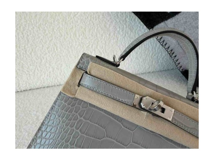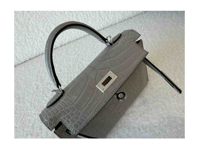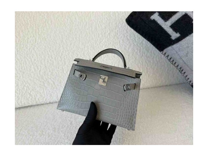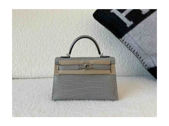 Hermès Mini Kelly II Matte Alligator Mississippiensis Gris Perle x Palladium Hardware > Mini Kelly