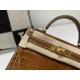 • Hermès Mini Kelly II Shiny Alligator Tobacco Grey x Gold Hardware