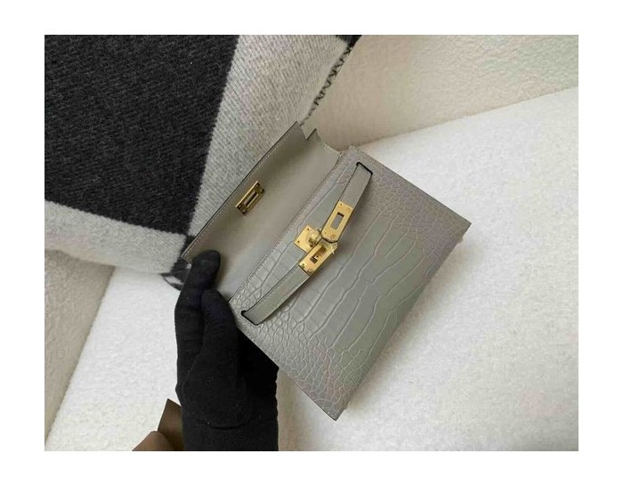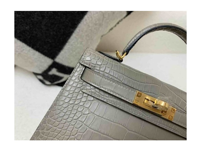 Hermès Mini Kelly II Matte Alligator Etoupe x Gold Hardware > Mini Kelly