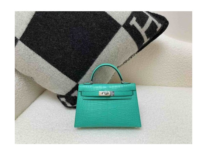 Hermès Mini Kelly II Matte Alligator Emerald Green x Palladium Hardware > Mini Kelly