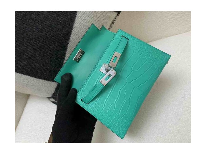 Hermès Mini Kelly II Matte Alligator Emerald Green x Palladium Hardware