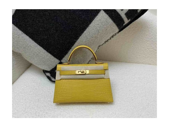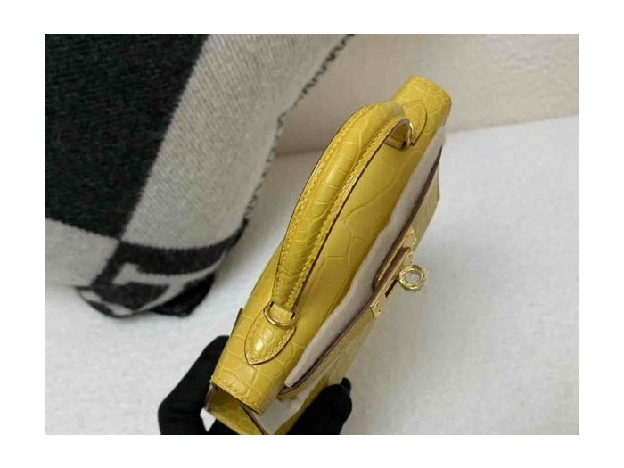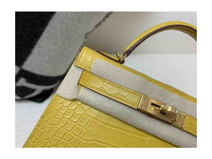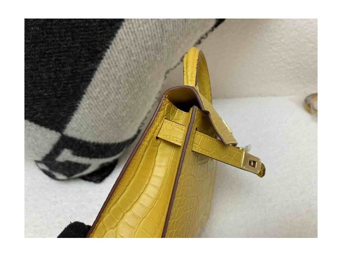 Hermès Mini Kelly II Matte Alligator Amber Yellow x Gold Hardware > Mini Kelly