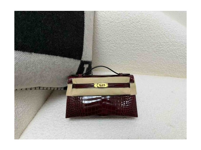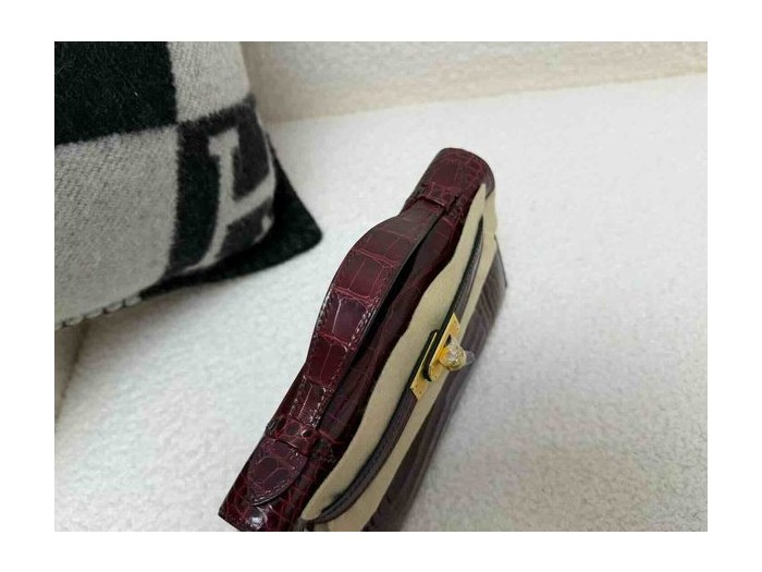 Hermès Mini Kelly Shiny Alligator Bordeaux x Gold Hardware
