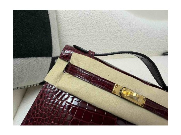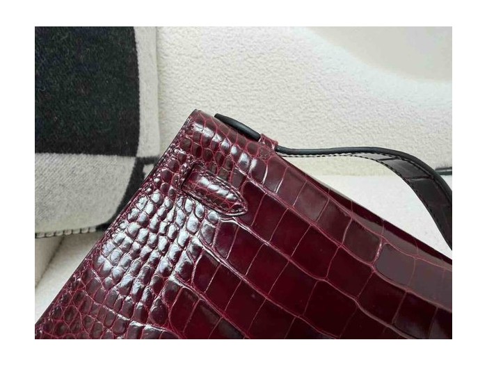 Hermès Mini Kelly Shiny Alligator Bordeaux x Gold Hardware > Mini Kelly