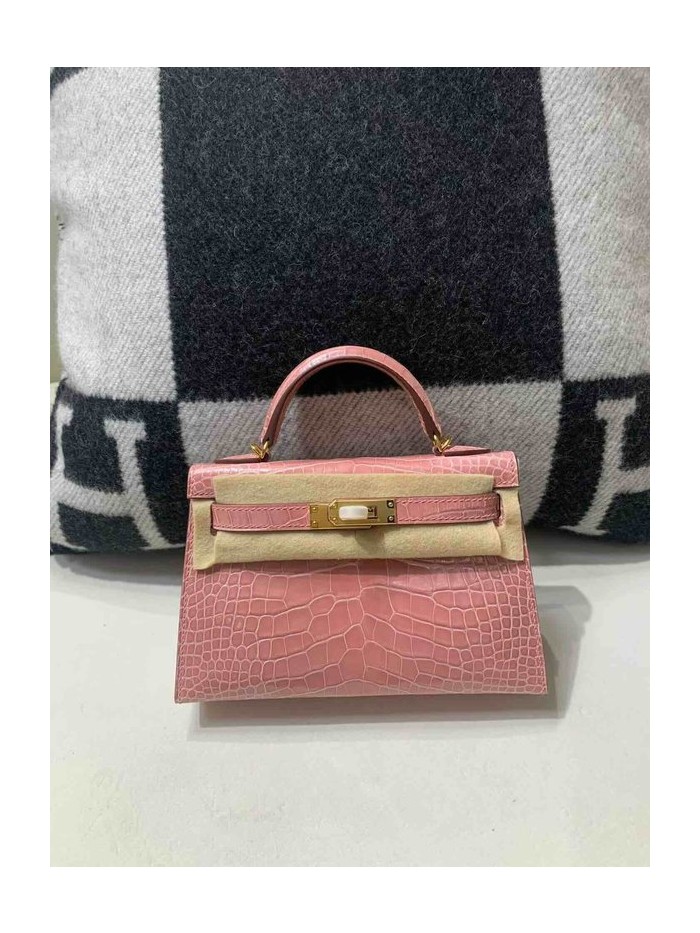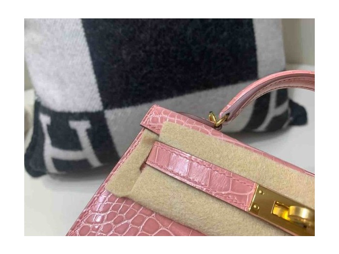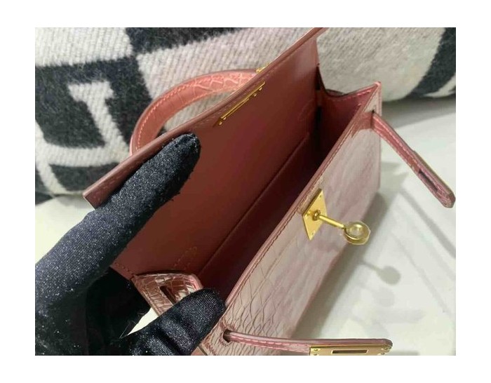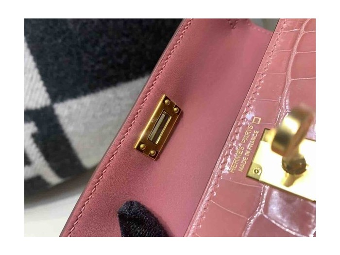 Hermès Mini Kelly II Shiny Alligator India Pink x Gold Hardware > Mini Kelly