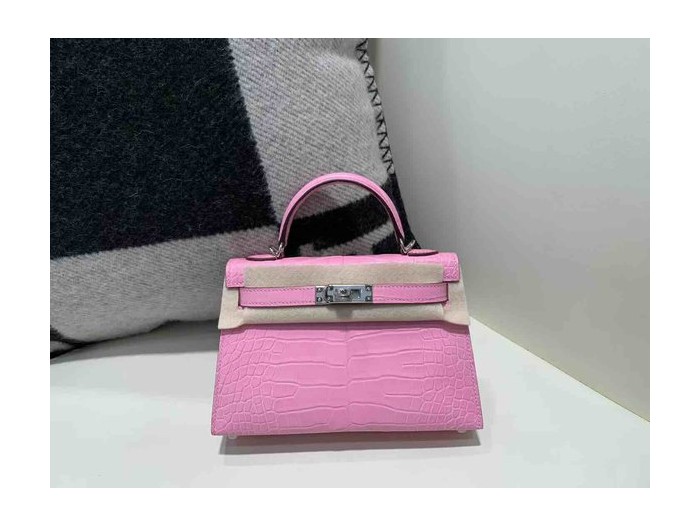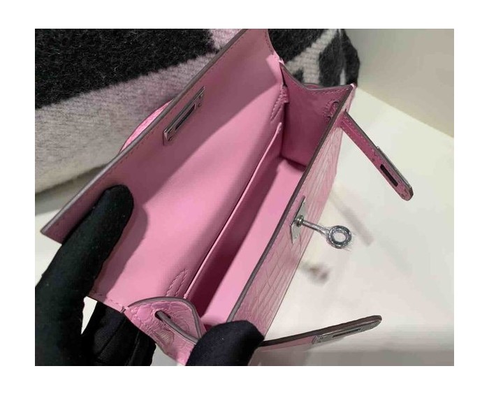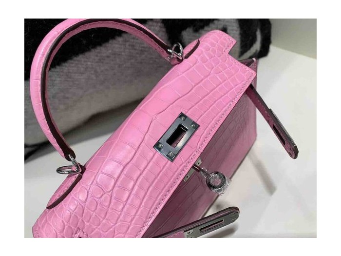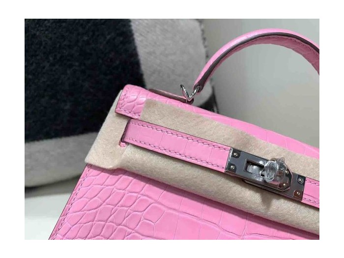 Hermès Mini Kelly II Matte Alligator Rose Sakura x Palladium Hardware > Mini Kelly