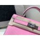 Hermès Mini Kelly II Matte Alligator Rose Sakura x Palladium Hardware