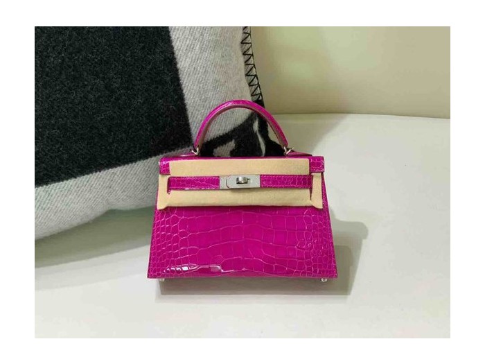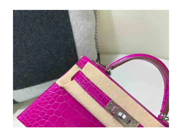 Hermès Mini Kelly II Shiny Alligator Amethyst Purple x Palladium Hardware > Mini Kelly