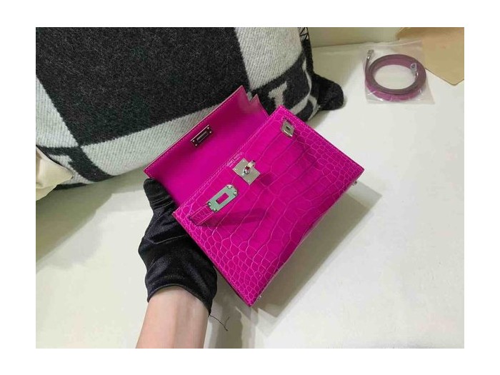 Hermès Mini Kelly II Shiny Alligator Amethyst Purple x Palladium Hardware