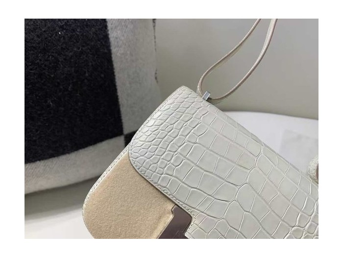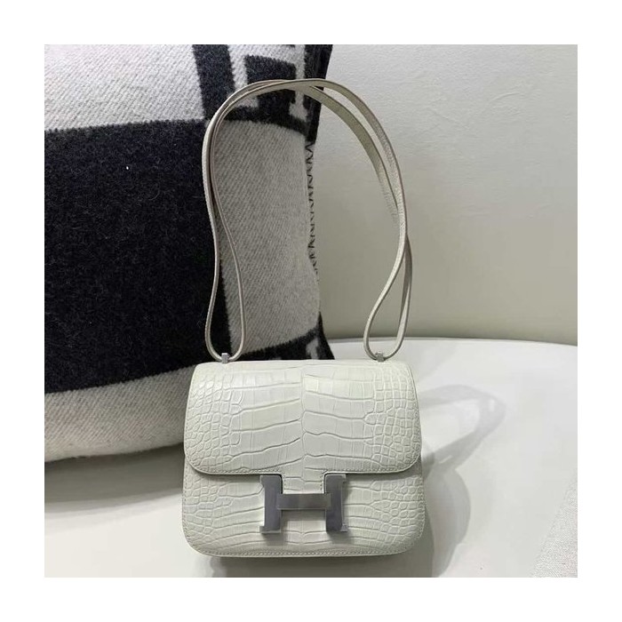 • Hermès Constance Mini 18 Lizard Gris Perle with Palladium Hardware