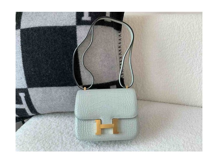 Hermès Constance 19 Matte Alligator Ice Grey x Gold Hardware