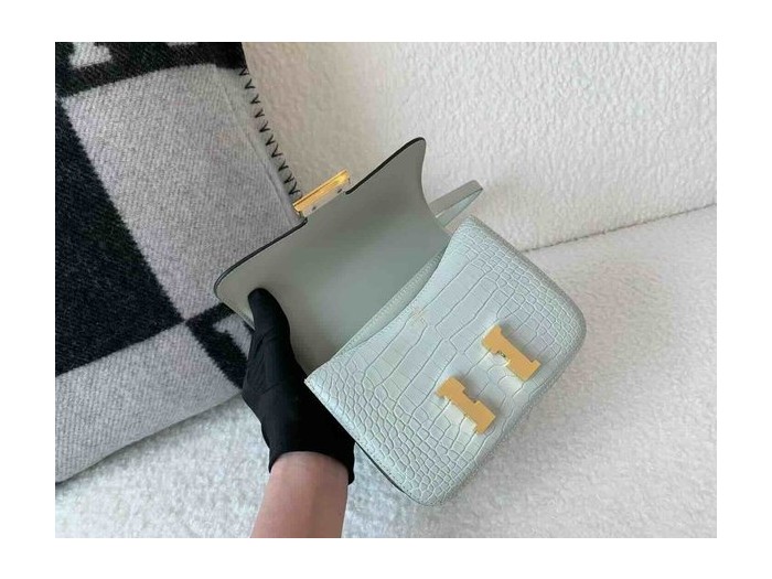 Hermès Constance 19 Matte Alligator Ice Grey x Gold Hardware > Constance