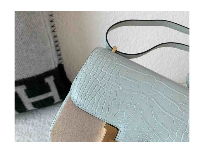 • Hermès Constance 19 Matte Alligator Ice Grey x Gold Hardware