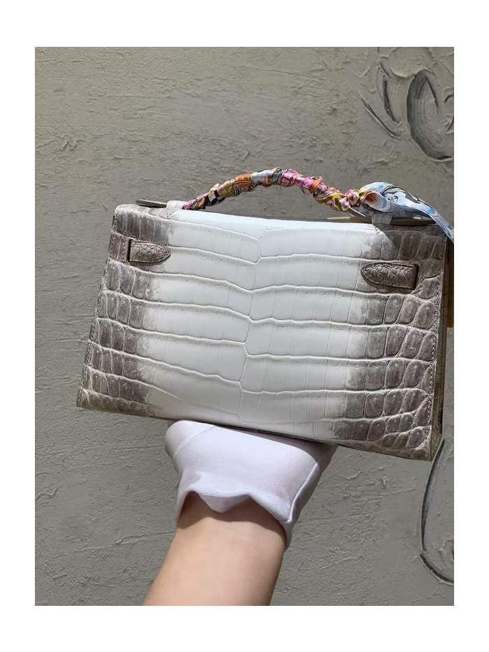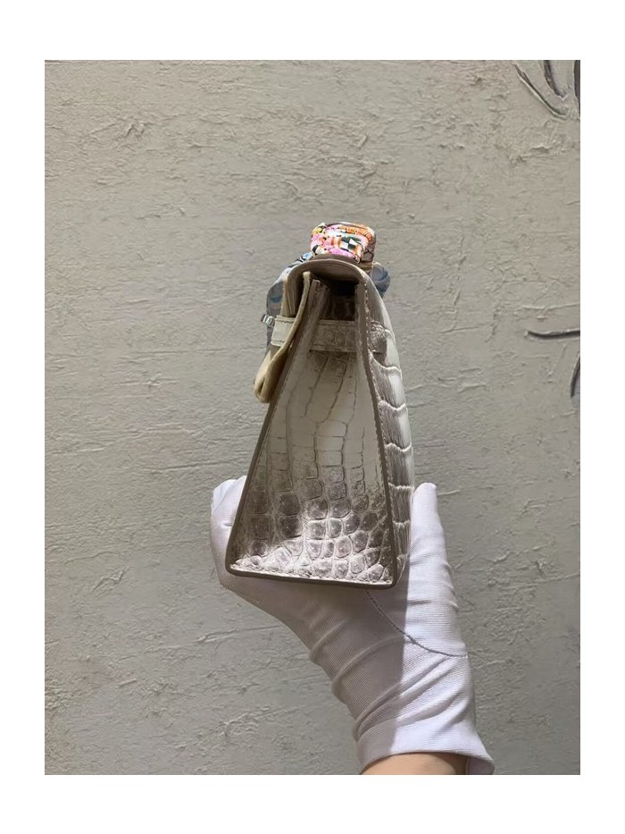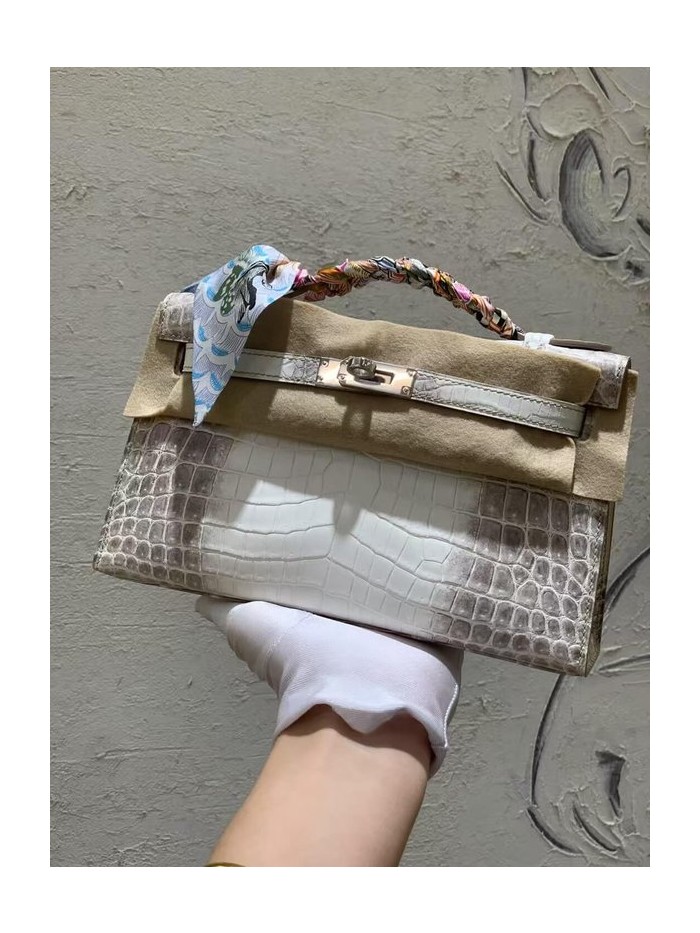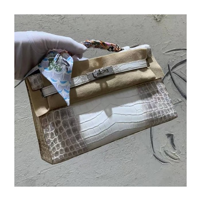 • Hermès Kelly Pochette Himalaya Niloticus Crocodile with Palladium Hardware