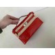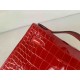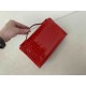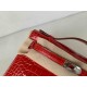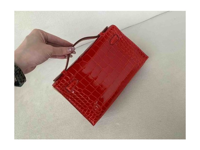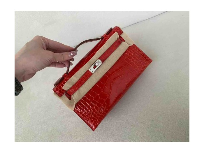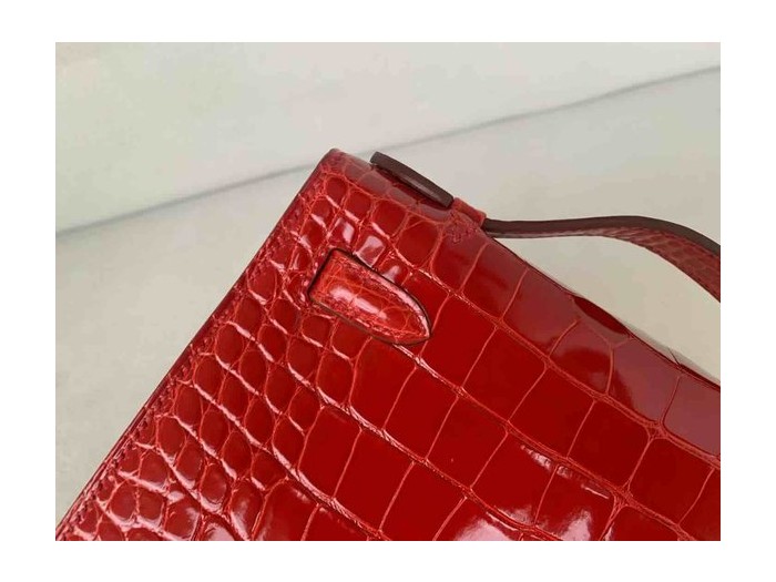• Hermès Pochette Shiny Alligator Rouge Casaque with Palladium Hardware