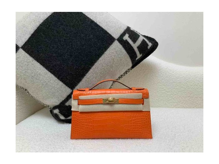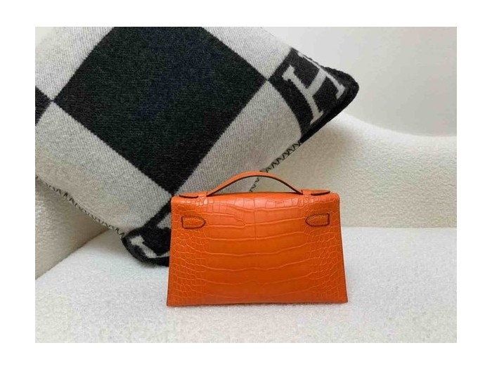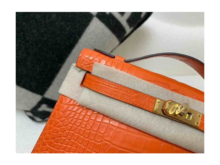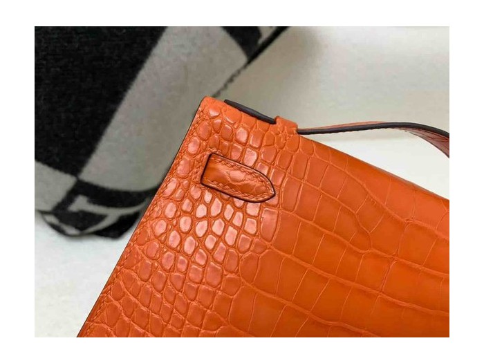 Hermès Pochette Matte Alligator Orange with Gold Hardware > Pochette