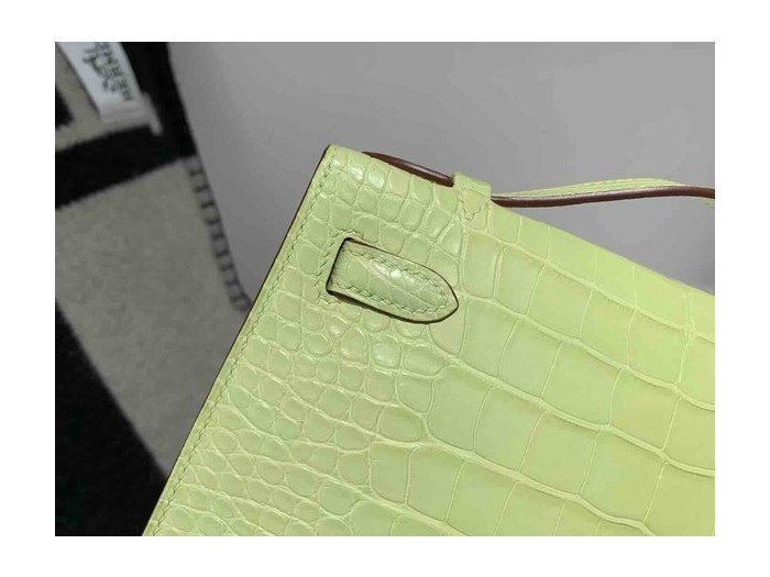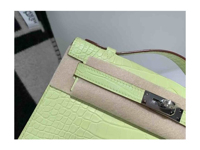 Hermès Kelly Pochette Matte Alligator Vert Yucca Palladium Hardware > Pochette