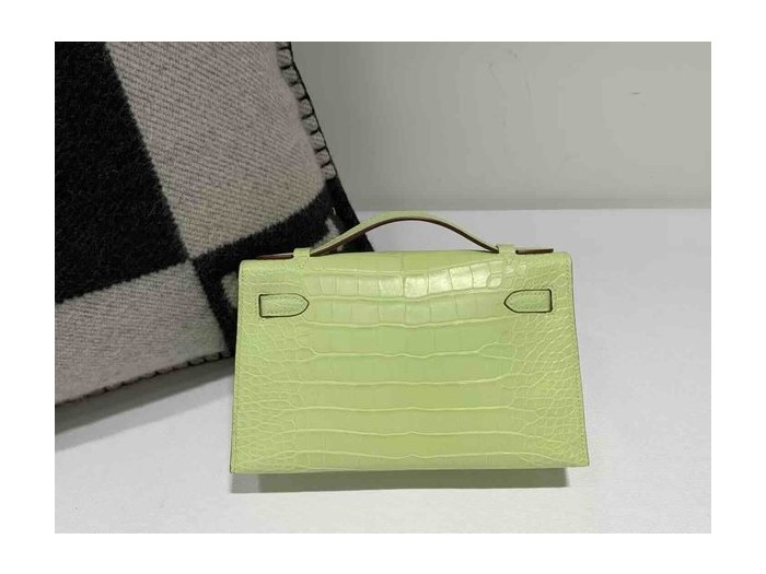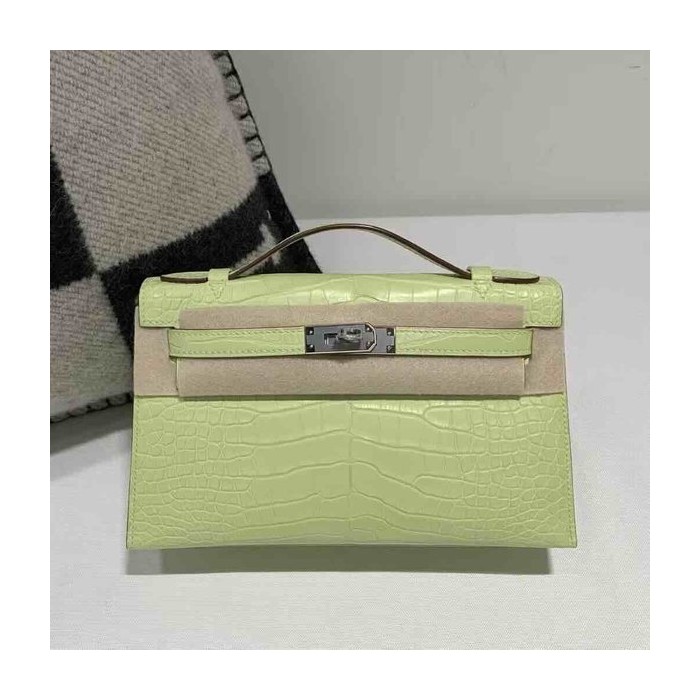 Hermès Kelly Pochette Matte Alligator Vert Yucca Palladium Hardware