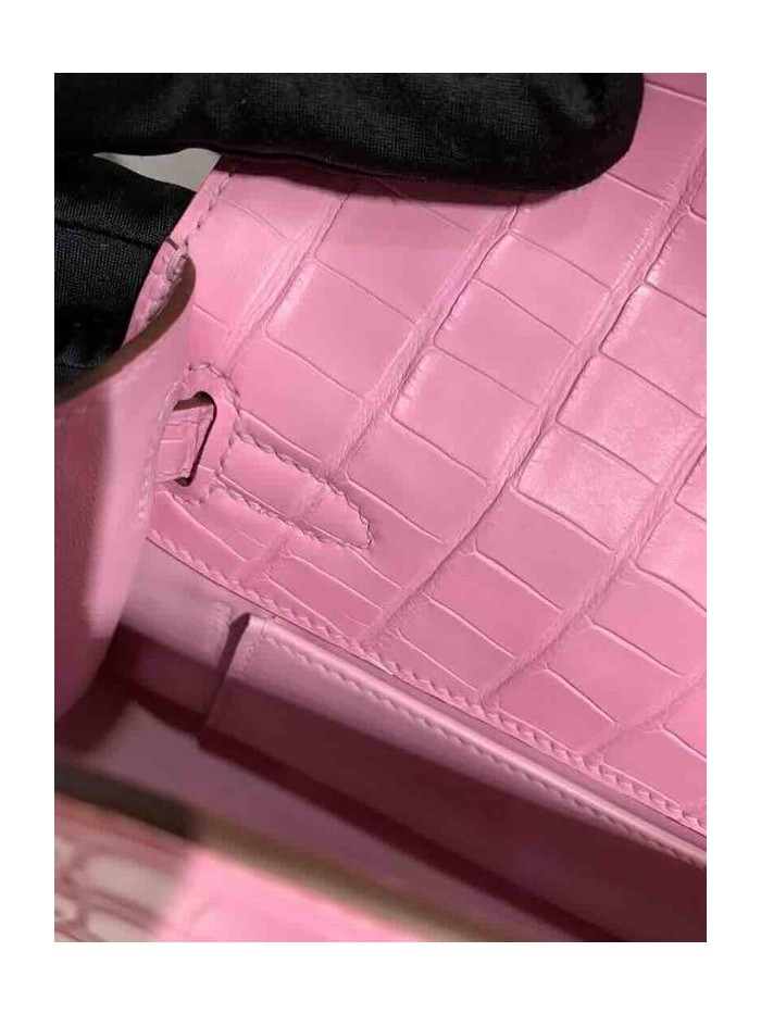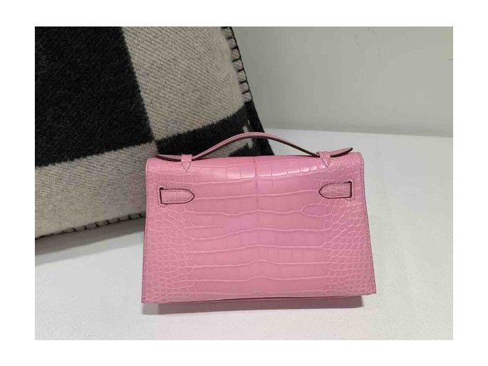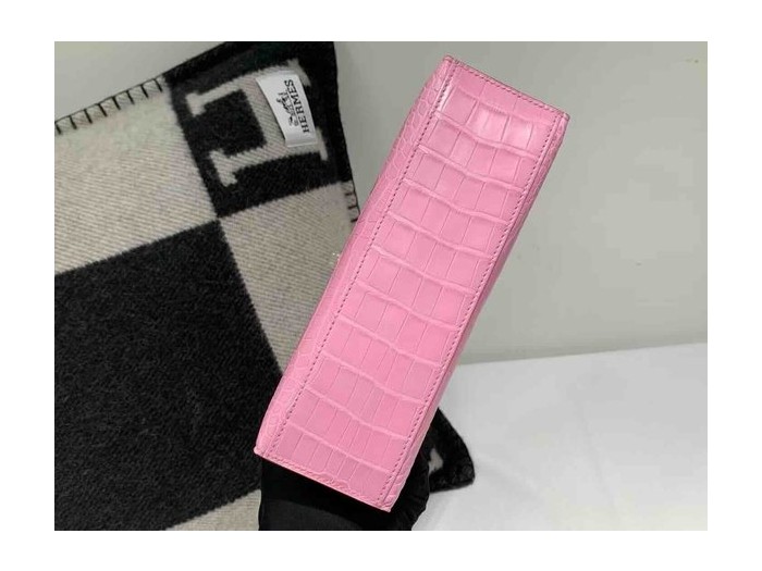 • Hermès Kelly Pochette Matte Alligator Rose Sakura Gold Hardware