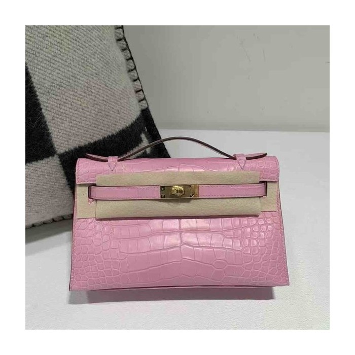 Hermès Kelly Pochette Matte Alligator Rose Sakura Gold Hardware